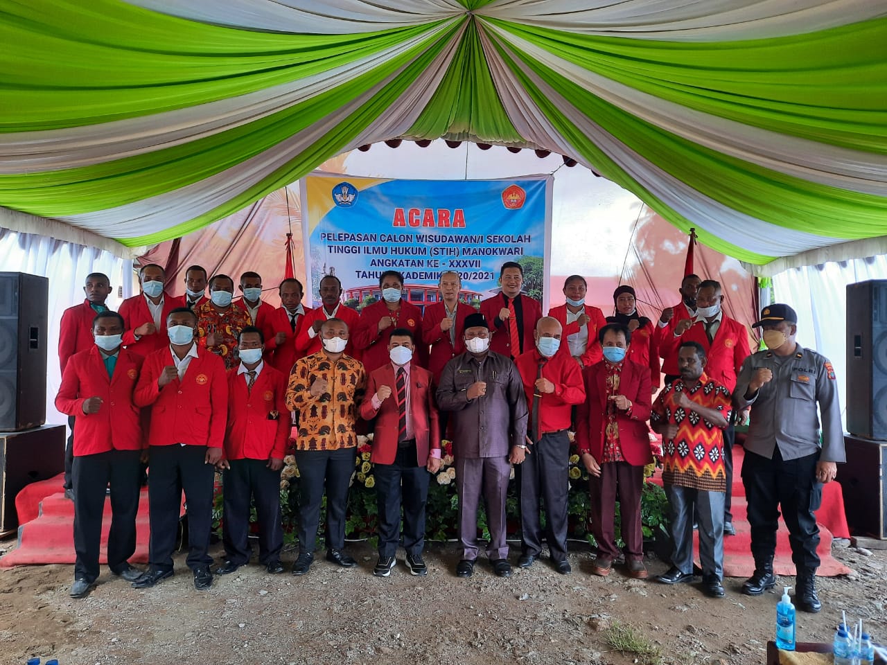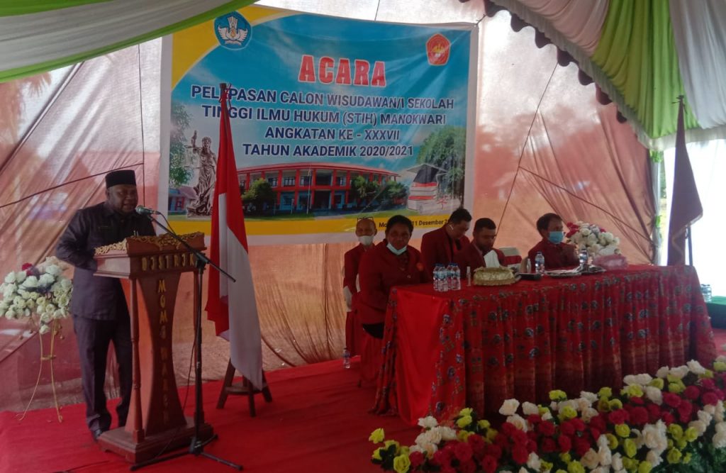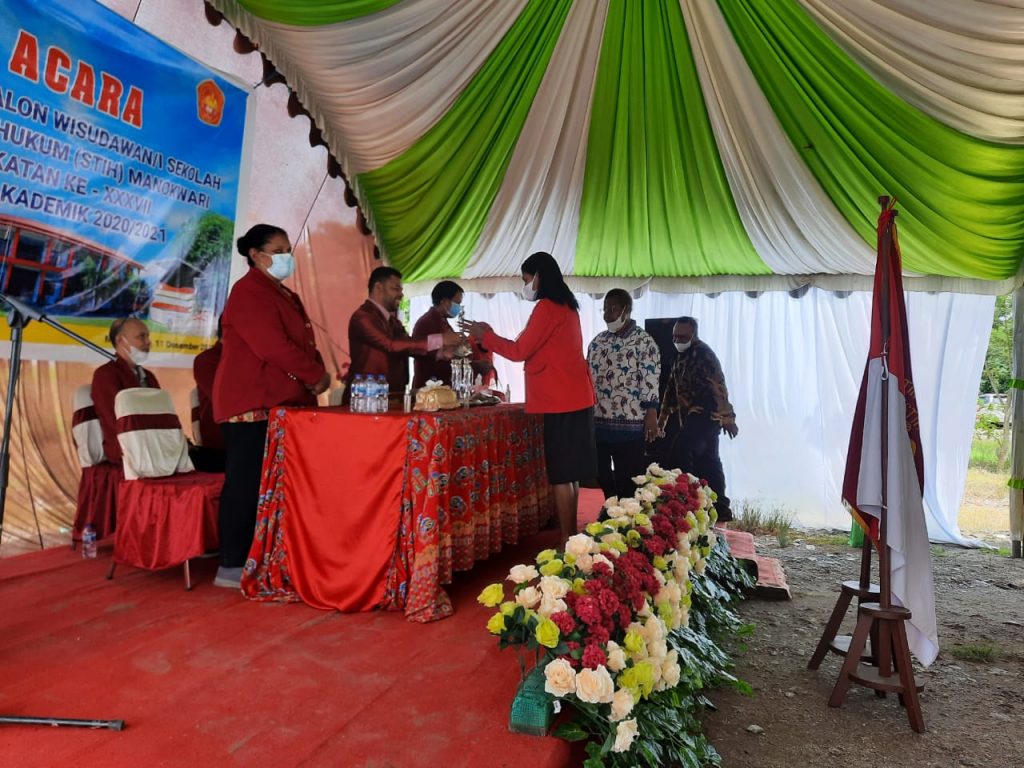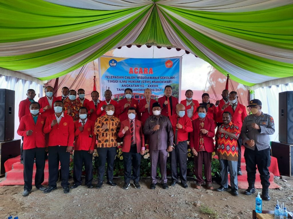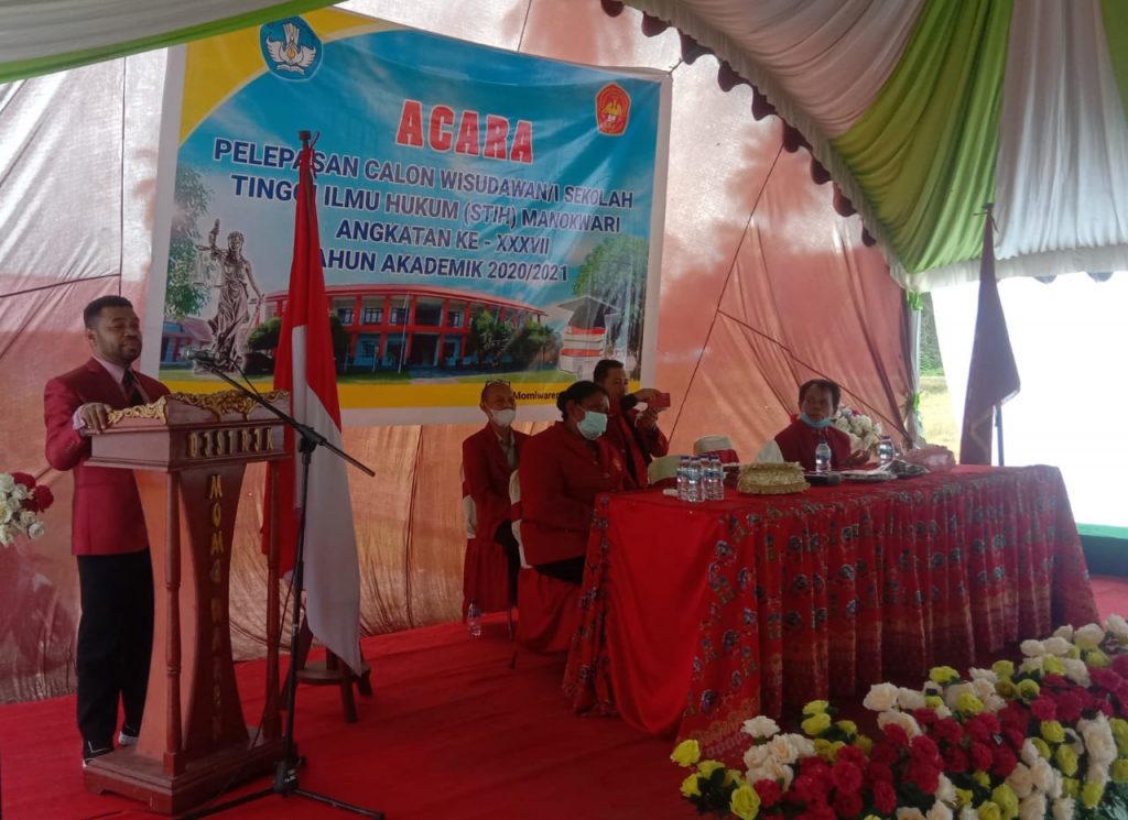 Ransiki – Civitas Akademi Sekolah Tinggi Ilmu Hukum (STIH) Manokwari melepas 42 calon Wisudawan-wisudawati Kelas Momiwaren Angkatan XXXVII Tahun Akademik 2020-2021.