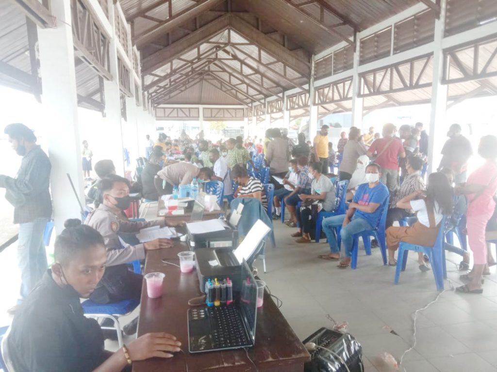 Kali ini, Polda Papua Barat membuka gerai vaksinasi keliling Polres Sorong bertema ‘Patuhi Protokol Kesehatan, Mari Kita Akhiri Pandemi, Vaksin Aman, Vaksin Halal’ di Alun-alun Aimas, Kabupaten Sorong, Rabu (19/1).