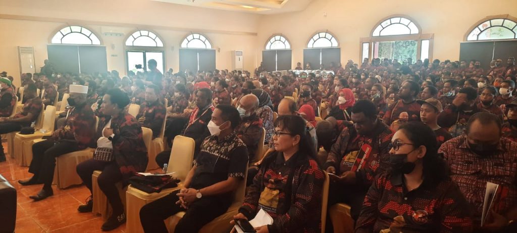 Pengukuhan DPD LGP Papua Barat dan deklarasi tolak penundaan pemilu 2024 di Hotel Aston Niu Manokwari, Jumat (01/04/2022). Foto : TP/AND