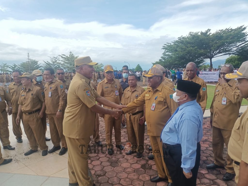 Apel yang dilaksanakan di halaman kantor Gubernur Papua Barat di Arfai turut dihadiri oleh Sekda Nataniel D. Mandacan, para pimpinan OPD dan ASN maupun honorer di lingkungan Pemprov Papua Barat.