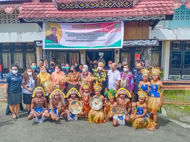 Kedatangan Dirjen Badilum dan rombongan disambut prosesi adat tarian Papua yang dibawakan Sanggar Tari Tibes Art.