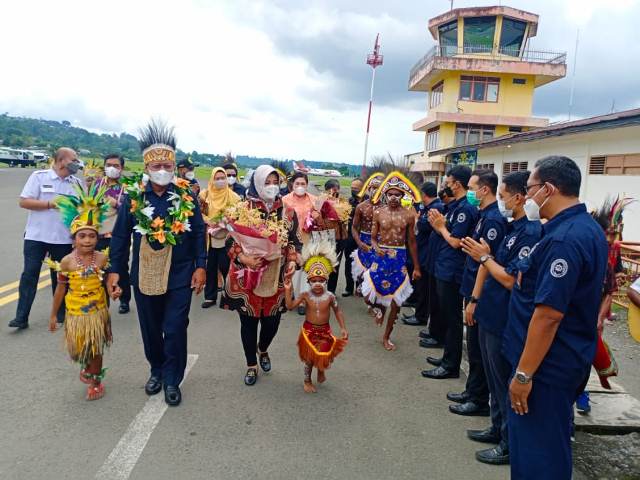 Kedatangan Dirjen Badilum dan rombongan disambut prosesi adat tarian Papua yang dibawakan Sanggar Tari Tibes Art.