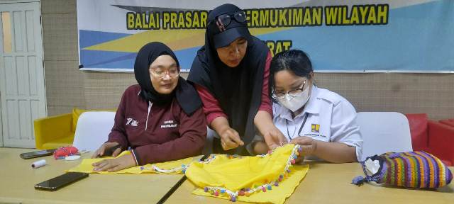 Pelatihan membuat sarung bantal pom-pom yang turut diikuti oleh Paguyuban Balai PPW Papua Barat. Kegiatan ini digelar oleh Krida Vidya Kementerian PUPR