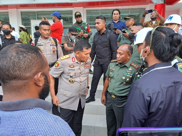 Kapolda Papua Barat , Irjen.Pol. Daniel Tahi Silitonga dan Pangdam XVIII Kasuari, Mayjen TNI Gabriel Lema, S.Sos sempat berdiskusi singkat sebelum meninggalkan Unipa. Foto (TP/K&K)