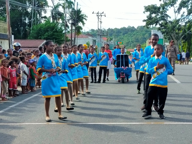 Wakil Bupati Manokwari, Edi Budoyo saat melepas peserta lomba Yospan jalan di Jl. Merdeka, Rabu (19/10). TP/SDR