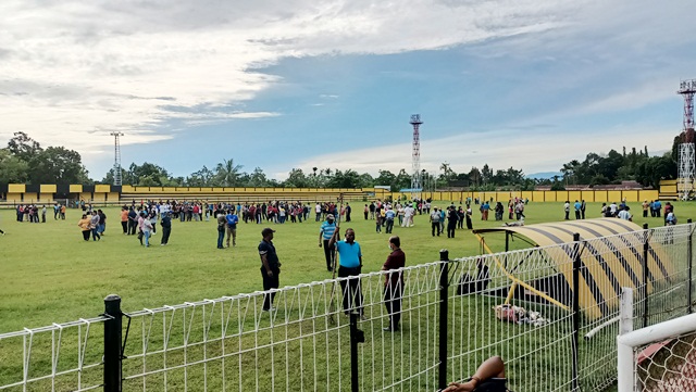 Sejumlah Pimpinan OPD dan ASN Pemprov Papua Barat melaksanakan pembersihan di areal Stadion Sanggeng Manokwari usai apel bersama, Jumat (6/1/2023). TP/FSM
