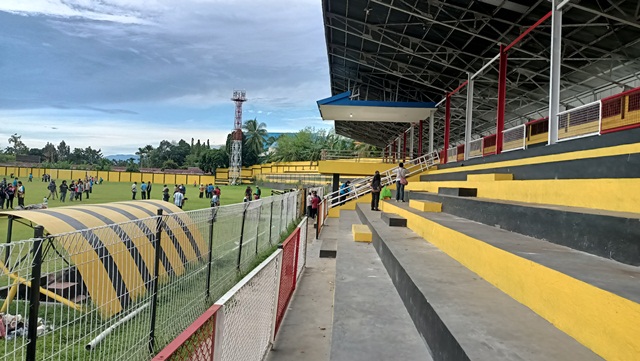 Sejumlah Pimpinan OPD dan ASN Pemprov Papua Barat melaksanakan pembersihan di areal Stadion Sanggeng Manokwari usai apel bersama, Jumat (6/1/2023). TP/FSM