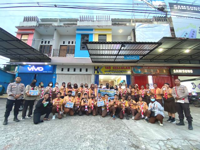 Manokwari,TABURAPOS.CO – Satbinmas Polresta Manokwari dan Pramuka menggelar aksi penggalangan dana untuk membantu korban terdampak kebakaran di Pasar Baru Sorong Kota beberapa waktu lalu.
