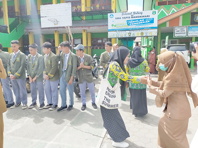 Rombongan SMA Negeri 1 Oransbari, dipimpin kepala sekolah, Sarah Kristina disambut Mirnawati, selaku kepala SMA Yapis, dan jajarannya setiba di halaman sekolah.