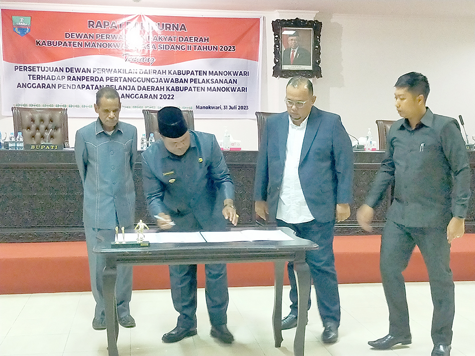 Persetujuan ditandai dengan penandatanganan berita acara oleh Bupati Manokwari, Hermus Indou, pimpinan DPRD Manokwari, Norman Tambunan dan Bons Z. Rumbruren, dalam sidang paripurna yang berlangsung di Gedung DPRD Sowi Gunung, Senin (31/7) sore.