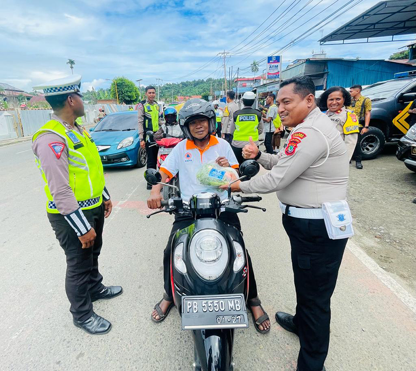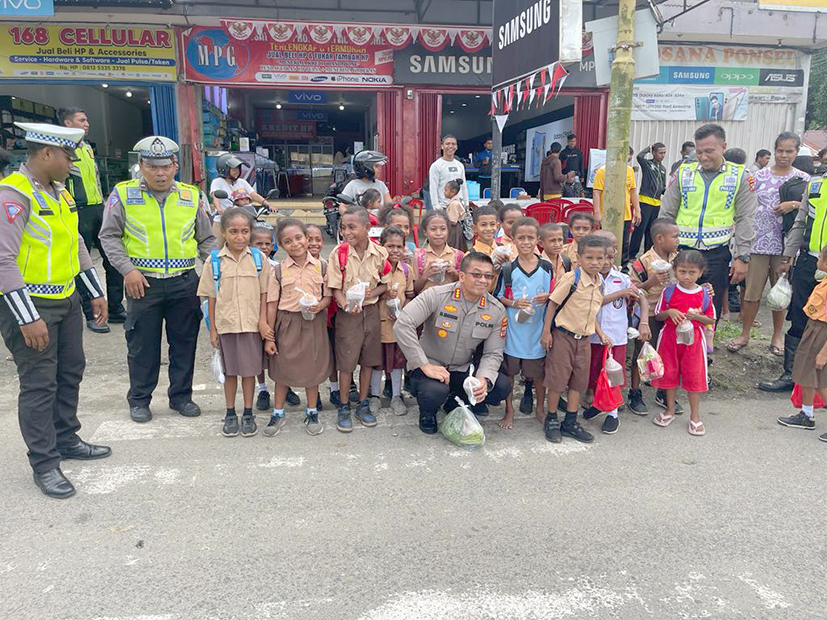 Manokwari,TABURAPOS.CO – Satlantas Polresta Manokwari menggelar bakti sosial dengan membagikan ratusan paket bingkisan kepada masyarakat, yang dipusatkan di Traffic Light Jl. Merdeka, Makaleuw, Jumat (15/09).