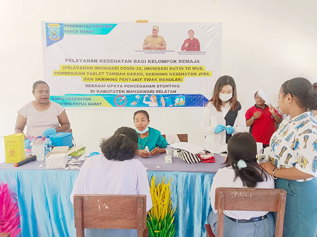 Ransiki, TP – Pemerintah Provinsi (Pemprov) Papua Barat melalui Dinas Kesehatan Provinsi Papua Barat kembali membuka pelayanan kesehatan bagi kelompok pelajar usia remaja sebagai upaya pencegahan stunting di Kabupaten Manokwari Selatan (Mansel) yang berlangsung di SMA Negeri 1 Ransiki, sejak tanggal 19-21 Oktober 2023 atau selama 3 hari lamanya.