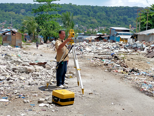 Nampak juga di tengah lokasi pasar yang sudah kosong, para penyedia jasa sedang melakukan pemantauan kondisi dengan menggunakan alat. [SDR-R3]