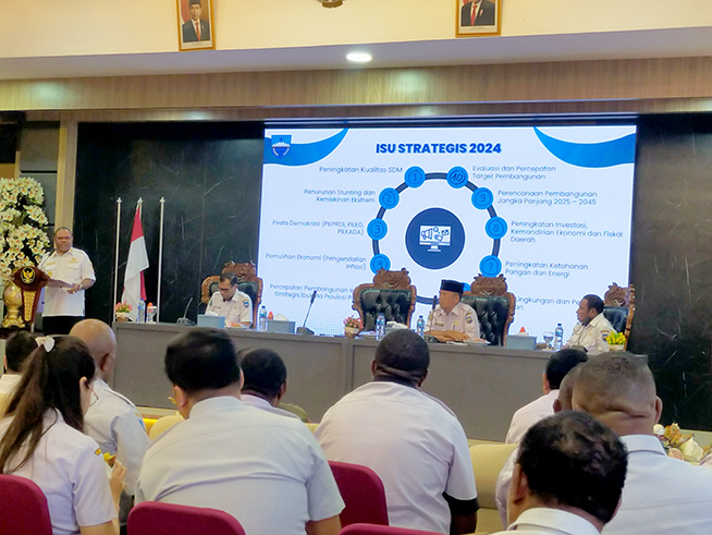 Adapun 10 isu strategis pembangunan Pemkab Manokwari di tahun 2024, diantaranya; peningkatan kualitas SDM, penurunan stunting dan kemiskinan ekstrem, pesta demokrasi (pilpres, pileg dan pilkada).
