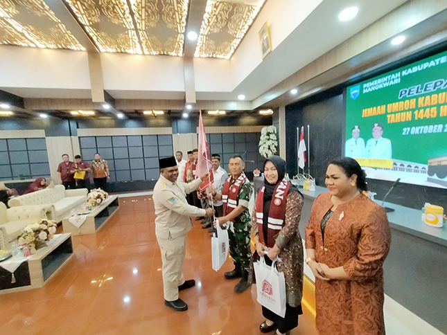 Manokwari, TABURAPOS.CO – Pemkab Manokwari memberangkatkan 25 umat Islam untuk menunaikan ibadah umroh musim umroh 1445H/2023 M. Para jamaah dilepas oleh Bupati Manokwari, Jumat (27/10) di Sasana Karya Kantor Bupati.