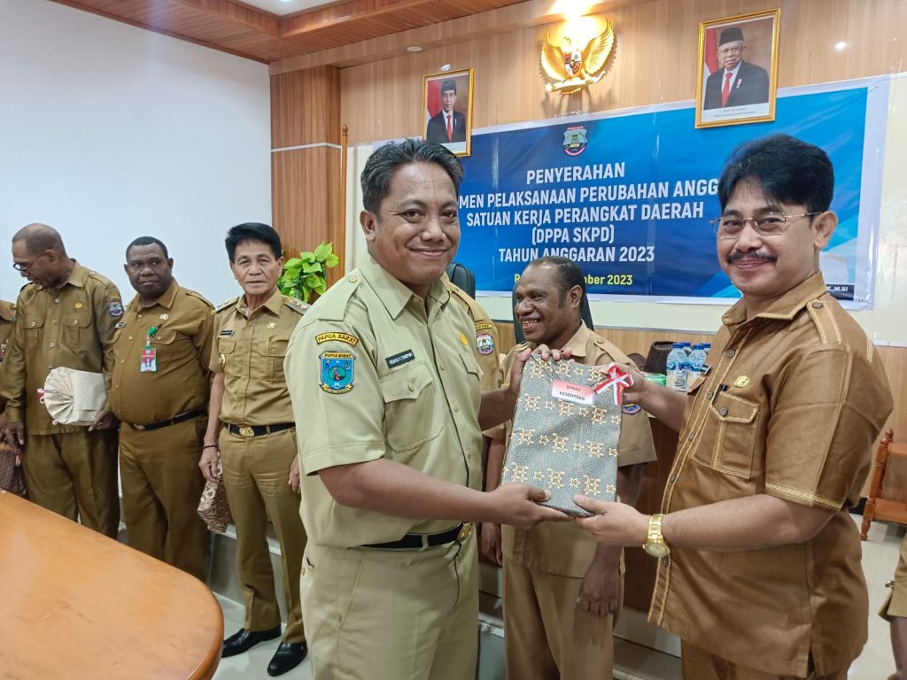 Berlangsung di Ruang rapat Kantor Bupati Mansel, penyerahan DPA Perubahan Tahun Anggaran 2023 dihadiri Pelaksana tugas Sekretaris Daerah (Plt. Sekda) Kabupaten Mansel, Adolop Kawey, para Staf Ahli Bupati, Asisten dan sejumlah Pimpinan OPD, Sekretaris dan Bendahara OPD.
