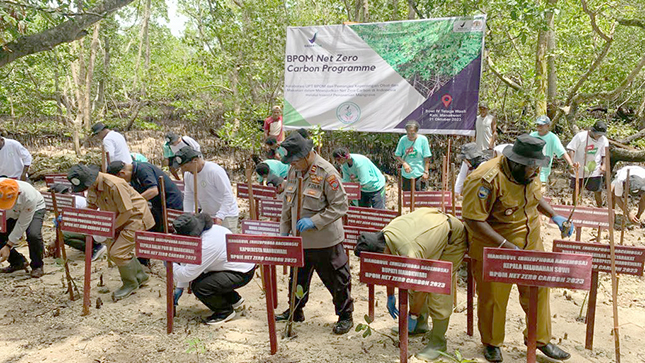 Dalam rangka mewujudkan transformasi Net Zero Carbon di Indonesia, lanjut dia, BPOM mengambil langkah melalui inisiatif penanaman mangrove yang secara serentak di laksanakan di seluruh Indonesia yang diharapkan dapat memberikan dampak positif bagi lingkungan dan iklim di Indonesia maupun dunia.