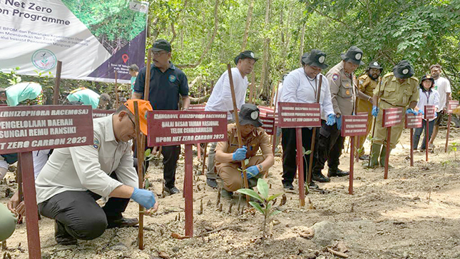 Penanaman mangrove dilaksanakan secara serentak di seluruh Indonesia dalam rangka mewujudkan transformasi Net Zero Carbon di Indonesia.
