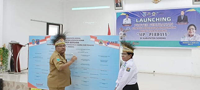 Kegiatan dihadiri puluhan peternak dan pengusaha retail ayam pedaging di Kota Sorong dan Kabupaten Sorong. Kegiatan itu ditandai dengan, penandatanganan komitmen bersama dalam strategi pengawasan perdangan daging ayam pedaging (Sip Perdaya). [MPS-R3]