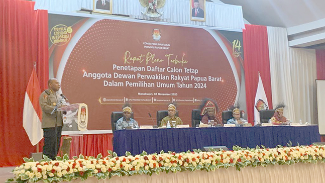 “Menjelang Pemilu, Polda Papua Barat sudah menggelar Operasi Mantap Brata. Kita harus bersyukur, situasi masih aman, meski di tingkat pusat terjadi polarisasi,” ungkapnya dalam Rapat Pleno Penetapan DCT Anggota DPR Papua Barat di Aston Niu Hotel, Manokwari, Jumat (3/11).