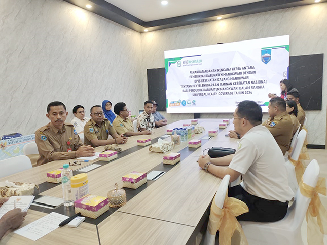 Manokwari, TABURAPOS.CO – Pemerintah Kabupaten (Pemkab) Manokwari bersama BPJS Kesehatan Cabang Manokwari melaksanakan penandatanganan rencana kerja tentang penyelenggara JKN bagi masyarakat Manokwari dalam rangka universitas health coverage tahun 2024.
