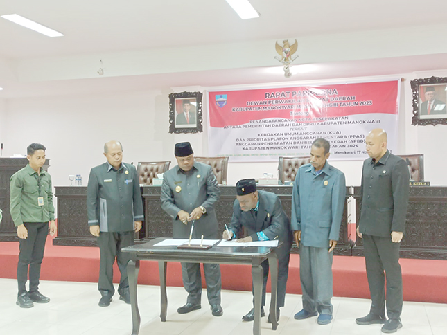 Hal ini ditandai dengan penandatanganan nota kesepahaman antara Bupati Manokwari dan pimpinan DPRD, pada paripurna yang berlangsung, di ruang rapat DPRD Manokwari, Jumat (17/11) malam.
