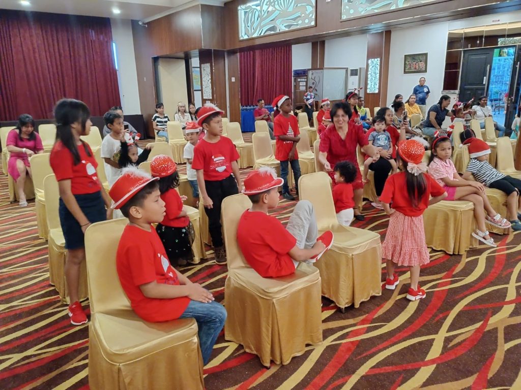 Terlihat, anak-anak begitu gembira. Guru-guru Happy Holy Kids yang turut mengantar anak anak untuk bernyanyi, bermain dan berkreasi sebelum bertemu Santa Claus juga terlihat bahagia.
