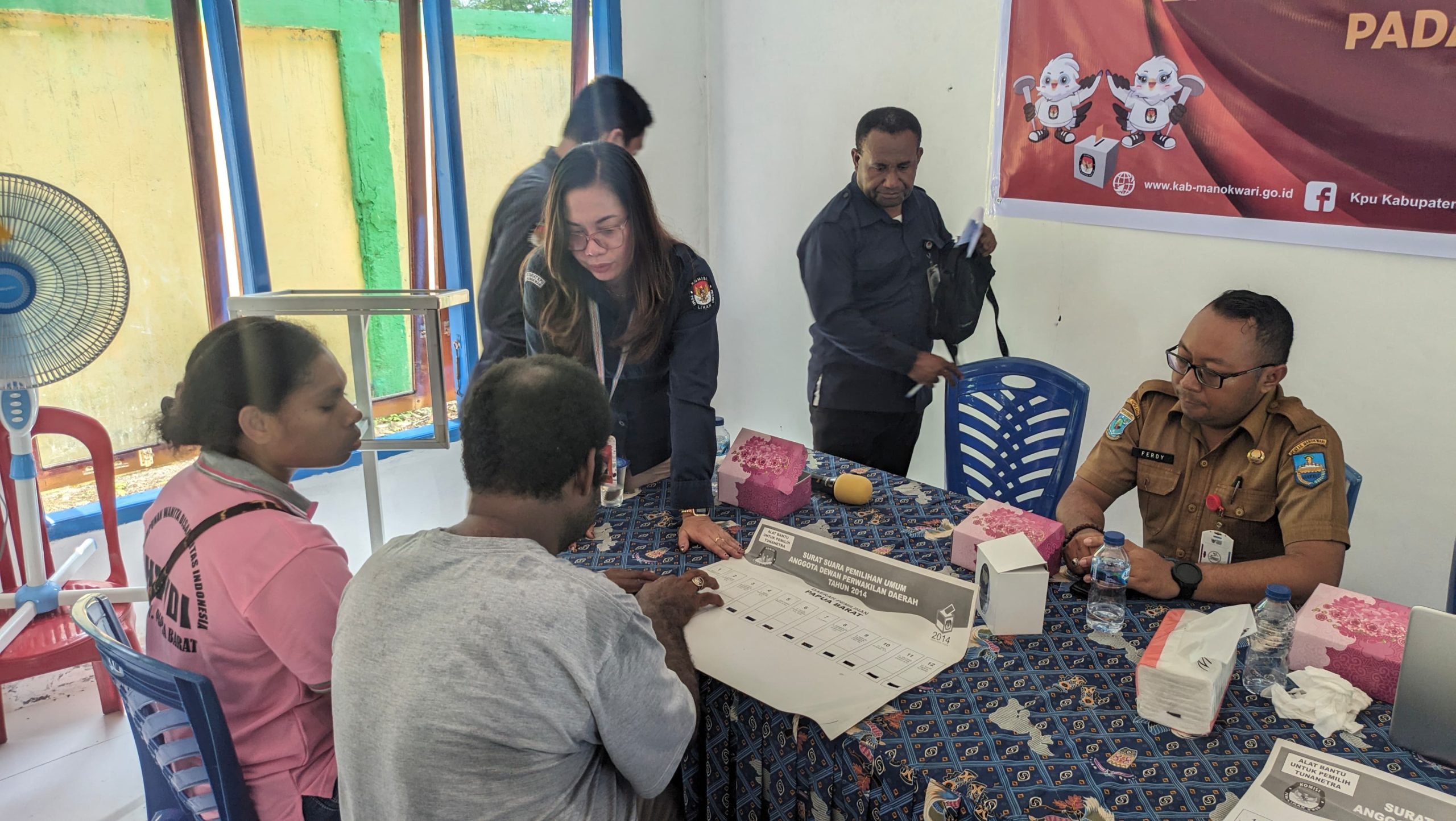 Manokwari, TABURAPOS.CO – Komisi Pemilihan Umum (KPU) menggandeng Dinas Sosial Manokwari, melakukan sosialisasi pemilu dan cara pencoblosan pada kaum difabel atau penyandang disabilitas, Selasa (12/120.