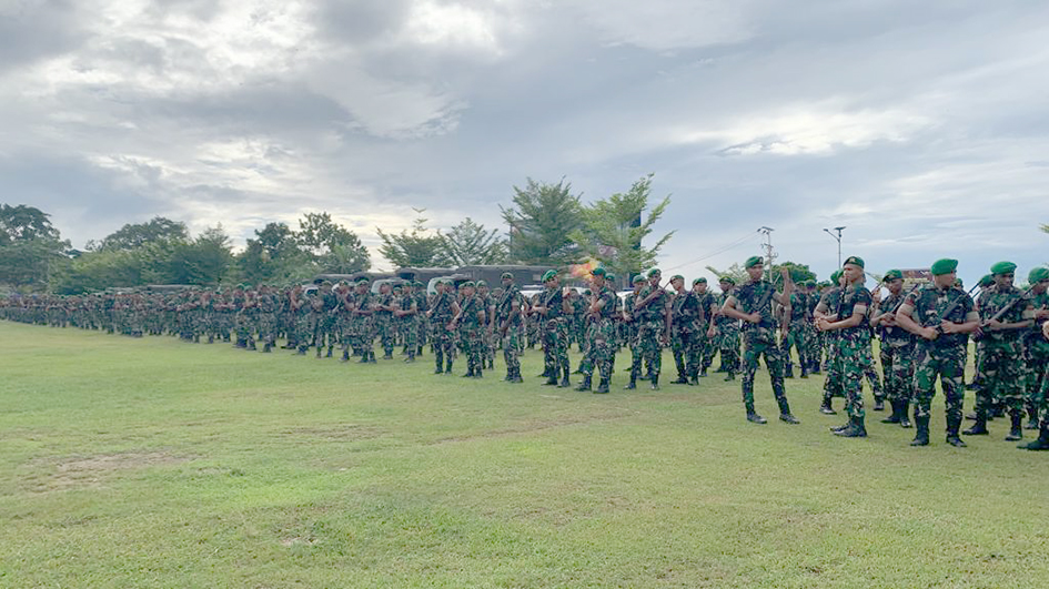 Prajurit TNI mengikuti apel kesiapsiagaan di Kodam XVIII Kasuari, Kabupaten Manokwari, Selasa (9/1). TP/AND