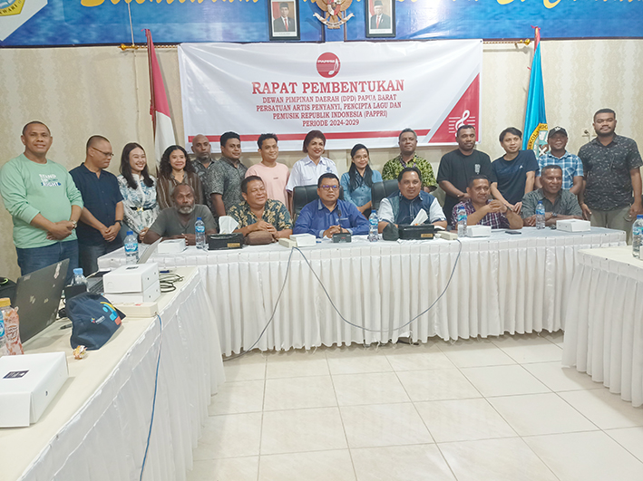 Manokwari, TABURAPOS.CO – Para seniman, yakni penyanyi dan pemusik di ibu kota Provinsi Papua Barat membentuk struktur organisasi DPD Persatuan Artis Penyanyi, Pencipta Lagu dan Pemusik Republik Indonesia (PAPPRI) Provinsi Papua Barat yang berlangsung di STIE Mah Eisa Manokwari, Selasa (23/1/2024).