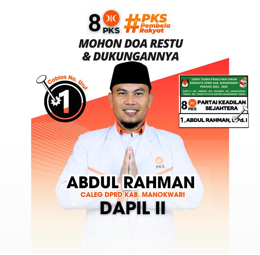 Manokwari, TABURAPOS.CO – Calon anggota legislatif nomor urut 1 DPRD Kabupaten Manokwari Dapil 2 dari Partai Keadilan Sejahtera (PKS), Abdul Rahman berdialog dengan warga di Ketapang Kwawi, Distrik Manokwari Timur, Kabupaten Manokwari, Rabu (24/1) malam.