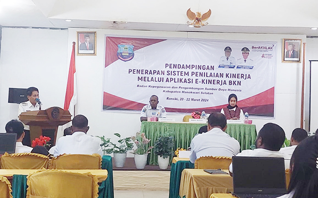 Kegiatan pelatihan dan pendampingan penerapan sistem penilaian kinerja Aplikasi E-Kinerja BKN diprakarsai Badan Kepegawaian dan Pengembangan Sumber Daya Manusia (BKPSDM) Kabupaten Manokwari Selatan (Mansel) bekerja sama dengan Kantor Regional XIV BKN Manokwari, turut melibatkan perwakilan sejumlah OPD di Lingkungan Pemkab Mansel sebagai percontohan.