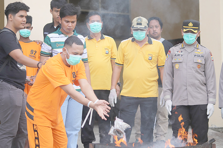 Diungkapkannya, pemusnahan Ganja tersebut merupakan hasil pengugkapan dan penangkapan dari 3 tersangka, yaitu LAS (23 tahun), LE (28 tahun), dan JM (22 tahun).