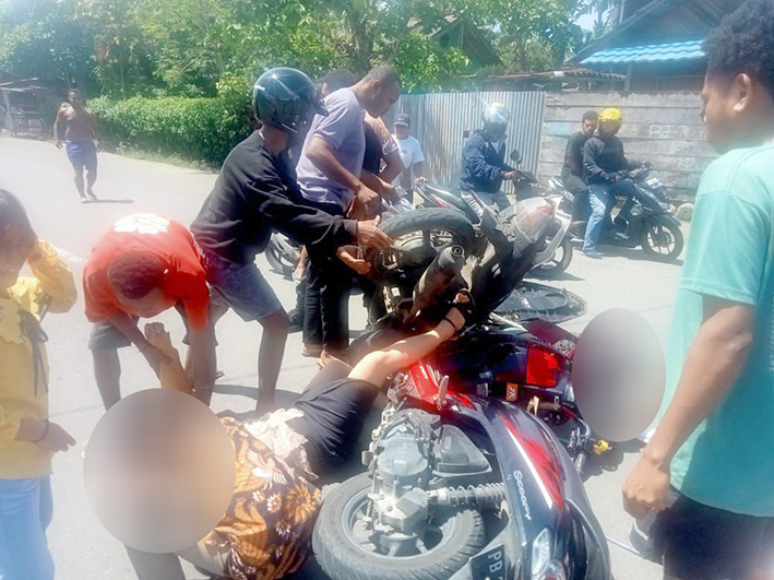 Ia menambahkan, sepeda motor lain, yakni Yamaha Mio M3 dikendarai seorang pelajar yang berusia 15 tahun berinisial BJM yang diketahui berdomisili di Manggoapi. “Ini laka lantas,” ungkapnya.
