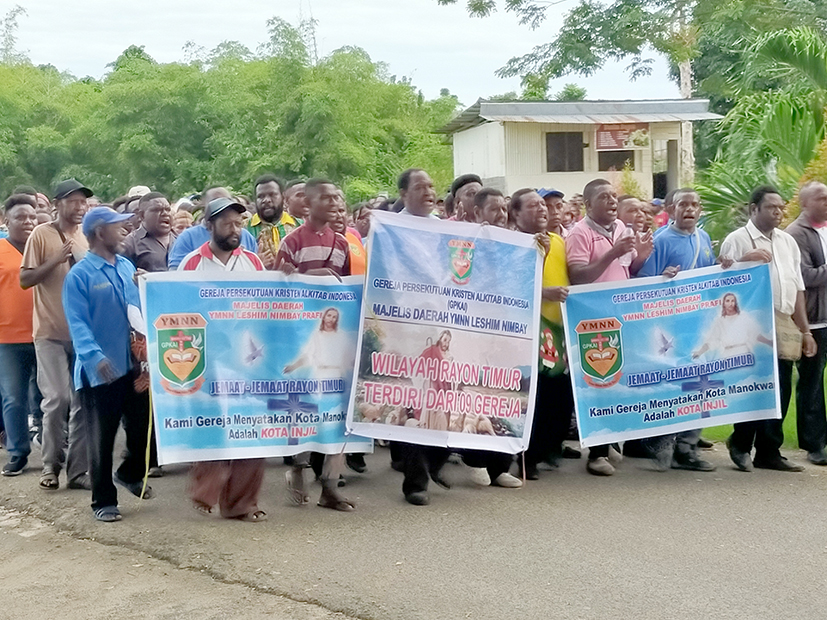 Seruan ini disampaikan ratusan jemaat dalam aksi damai di halaman Kantor Bupati Manokwari di Sowi Gunung, Manokwari, Selasa (16/7/2024).