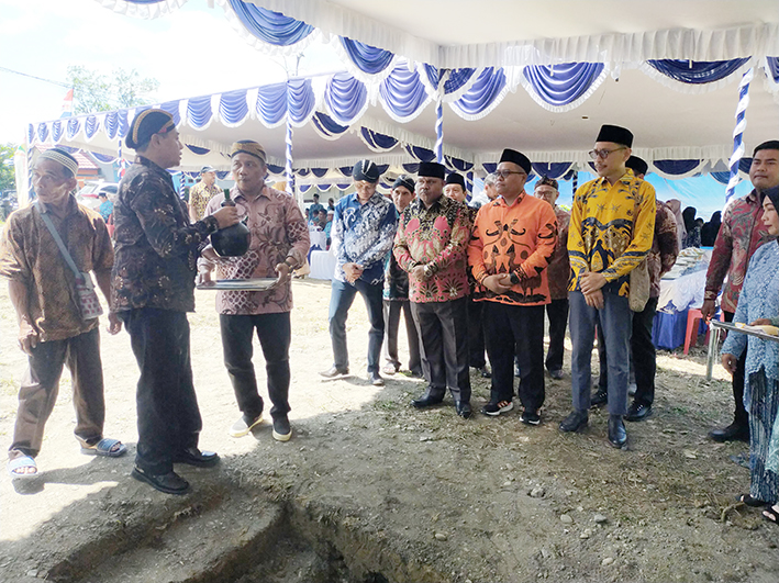 Manokwari, TP – Bupati Manokwari, Hermus Indou merestui pembangunan rumah adat Jawa Kerukunan Sragen Asri di Manokwari ‘Pendopo Joglo’, dengan meletakkan baru pertama pembangunannya, di Swapen, Sabtu (3/8/2024).