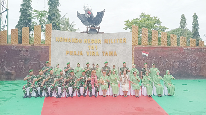 Kedatangan Pangdam dan rombongan disambut Danrem 181 PVT, Brigjen TNI Totok Sutriono bersama seluruh staf, prajurit, dan anggota Persit.