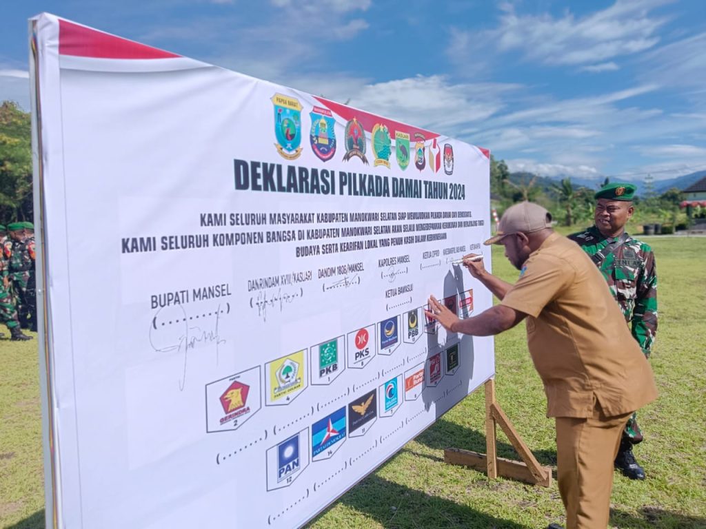 Setelah itu dilakukan deklarasi Pilkada Damai 2024 yang bertujuan menjaga situasi provinsi Papua Barat yang aman kondusif dan berintegritas.