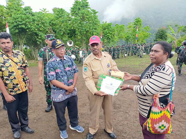 Bantuan berupa uang tunai diserahkan Asisten II Setda Manokwari, Harjanto Ombesapu mewakili Bupati, didampingi Kepala Badan Penanggulangan Bencana Daerah (BPBD) Kabupaten Manokwari, Tajudin, pada momen penutupan TMMD ke-121 tahun 2024, di Kampung Kwau, Kamis (22/8/2024).