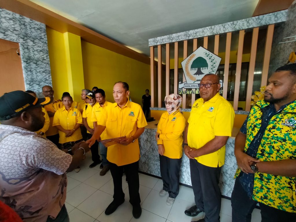 Yosua Sayori dan kawan-kawan datang untuk menyampaikan aspirasi meminta DPD Golkar Papua Barat mengusulkan Orgenes Wonggor untuk kembali menjabat Ketua DPR Papua Barat periode 2024-2029.