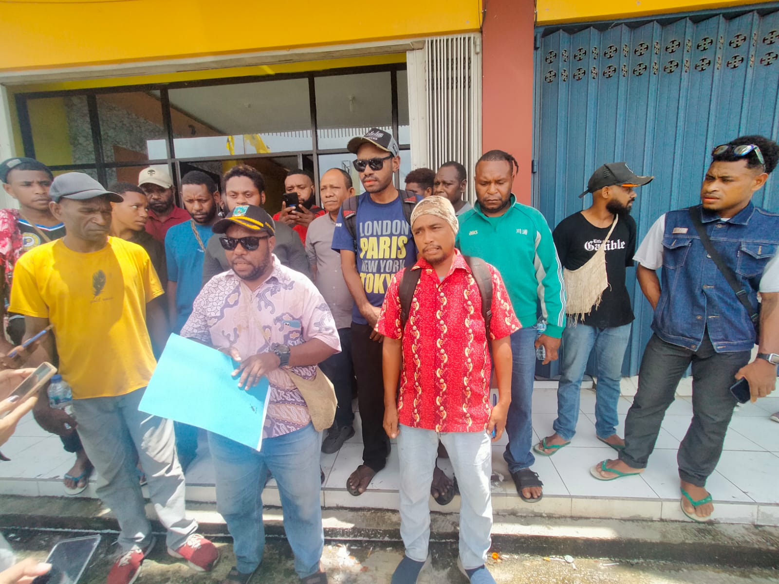 Yosua Sayori dan kawan-kawan datang untuk menyampaikan aspirasi meminta DPD Golkar Papua Barat mengusulkan Orgenes Wonggor untuk kembali menjabat Ketua DPR Papua Barat periode 2024-2029.
