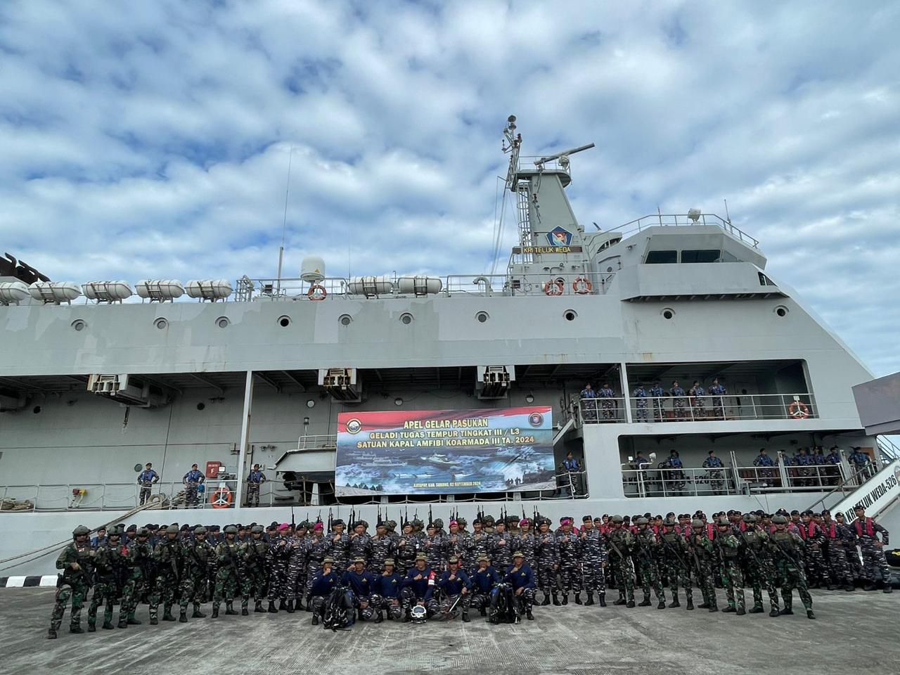Sorong, TP – Sebanyak 32 siswa Satuan Pendidikan (Satdik) mengikuti latihan Geladi Tugas Tempur (Gelagaspur) tingkat III/L3 Satuan Kapal Amfibi (Satfib) Koarmada III TA 2024, bertempat di Dermaga Koarmada III Sorong, Senin (2/9/2024).