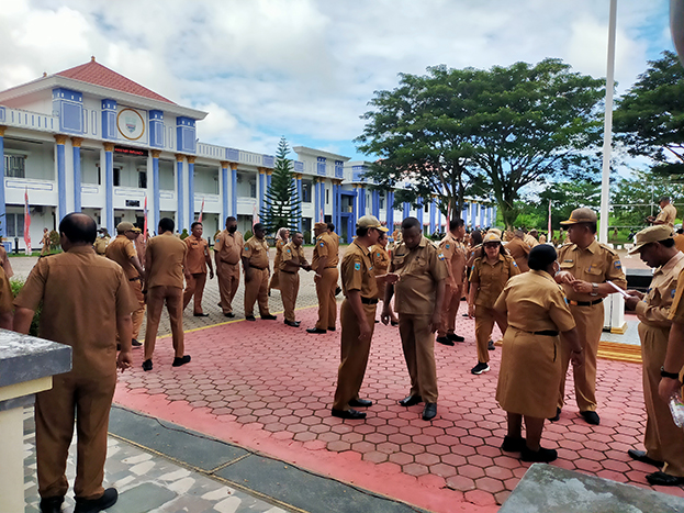 Pimpinan OPD di lingkup Pemda Manokwari bersama Bupati setelah mengikuti apel gabungan di halaman Kantor Bupati, Sowi Gunung, Senin (9/9/2024) TP/SDR