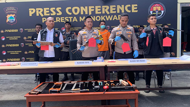 “Dalam kasus ini, tersangka PE berperan sebagai orang yang membuat atau memproduksi senpi rakitan. Sedangkan 2 tersangka lain berinisial TK dan JHE adalah anak dari tersangka PE yang berperan sebagai orang yang memperjualbelikan senpi kepada masyarakat di daerah Manokwari, Ransiki, dan Warmare. Ketiga tersangka sudah ditahan di Polresta Manokwari,” papar Kabag Ops.