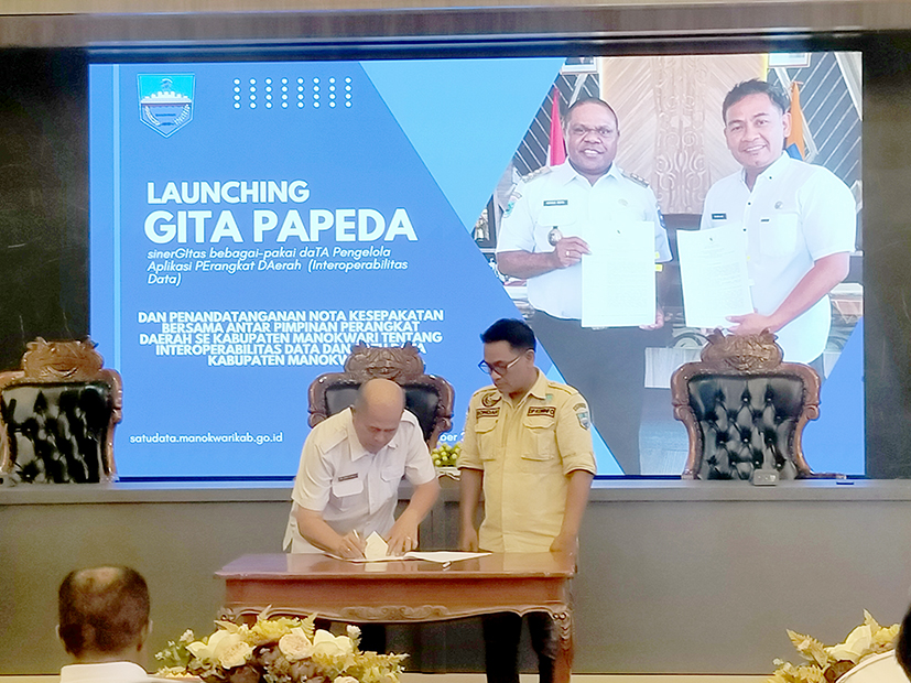 Bersamaan dengan peluncuran itu, juga dilakukan penandatanganan nota kesepakatan tentang Interoperabilitas Data bersama antar pimpinan perangkat daerah Kabupaten Manokwari.