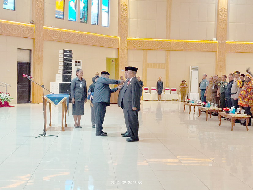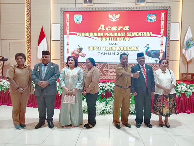 Pelantikan Kepala Biro Pemerintahan Setda Provinsi Papua Barat sebagai Pejabat Sementara Bupati Fakfak dan Kepala BPBD Provinsi Papua Barat sebagai Pejabat Sementara Bupati Teluk Wondama berdasarkan surat keputusan Mendagri Nomor: 100.2.1.3-3823 Tahun 2024.