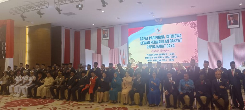 Sorong, TP – Sebanyak 35 anggota Dewan Perwakilan Rakyat (DPR) Papua Barat Daya periode 2024-2029 resmi dilantik pada Jumat (11/10/2024) di Hotel ACC, Kabupaten Sorong.
