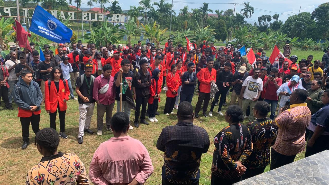 Manokwari, TP – Sejumlah organisasi kemahasiswaan dan masyarakat menggelar unjuk rasa berawal di depan Kampus Universitas Papua (Unipa) Manokwari, Jl. Gunung Salju, Amban, kemudian menuju Kantor Majelis Rakyat Papua Barat (MRPB) di Sowi Gunung dan DPR Papua Barat di Arfai, Manokwari, untuk menolak program transmigrasi ke tanah Papua, Kamis (7/11).