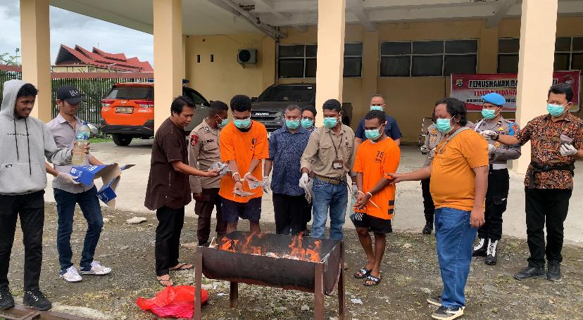 Manokwari, TP – Ditresnakorba Polda Papua Barat memusnahkan barang bukti narkotika jenis ganja dari dua kasus pengungkapan. Pemusnahan barang bukti dilaksanakan dihalaman gedung tempat penitipan Tahanan dan barang Bukti (Tahti) Polda Papua Barat, Maripi, Manokwari, Jumat (08/11) sekitar pukul 14.00 WIT.