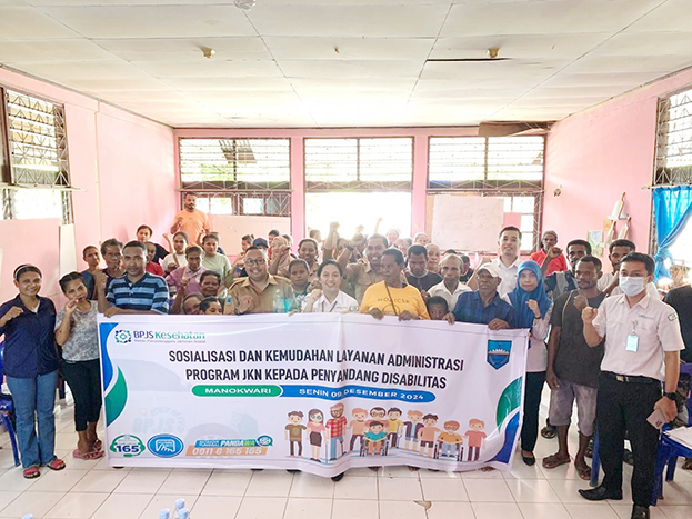 Manokwari, TP – BPJS Kesehatan Cabang Manokwari bersama Dinas Sosial Kabupaten Manokwari melaksanakan sosialisasi Program Jaminan Kesehatan Nasional (JKN) bagi penyandang disabilitas dalam memperingati Hari Disabilitas Nasional yang jatuh pada Senin, 9 Desember 2024.